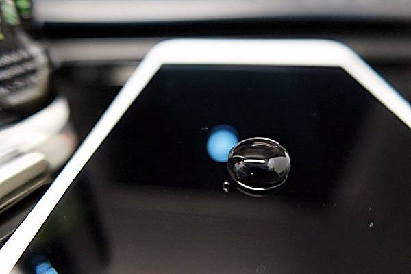 抗水疏油的測試,玻璃上面的鍍膜非常完美